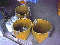 これ、何か知ってる? 「ビク」と呼んでます。ミカンを収穫する時にこれを肩から下げて切ったミカンをこの中に入れます。昔は竹(だと思います)で出来たものを使っていましたが、今は軽いビニール?(プラスチック?)製になりました。 |
