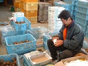 アップルキウイ出荷中。 一つ一つ丁寧に手作業で、大切にキャップに入れて箱詰めします。 |