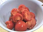 - 2.のトマトを1cm角ぐらいに刻んでおく。(切ったときに出る水分もちゃんと使いましょう。)